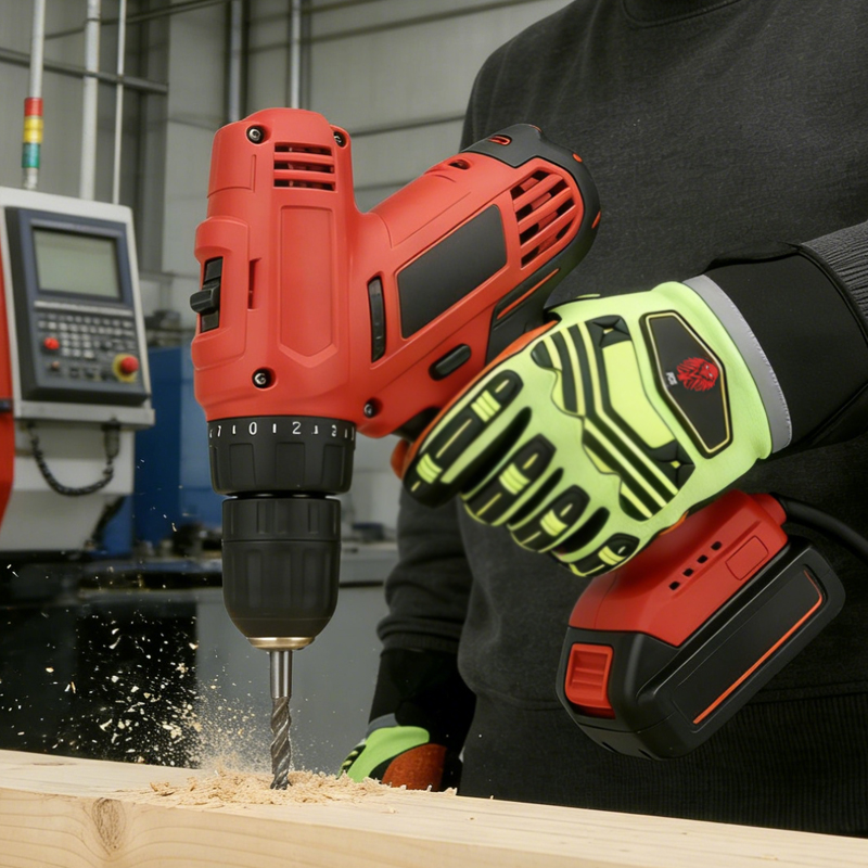 This TPR impact-resistant glove is commonly used in industrial manufacturing , Comfort and handling suitable for all-day use.